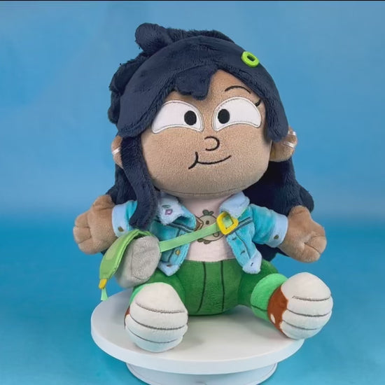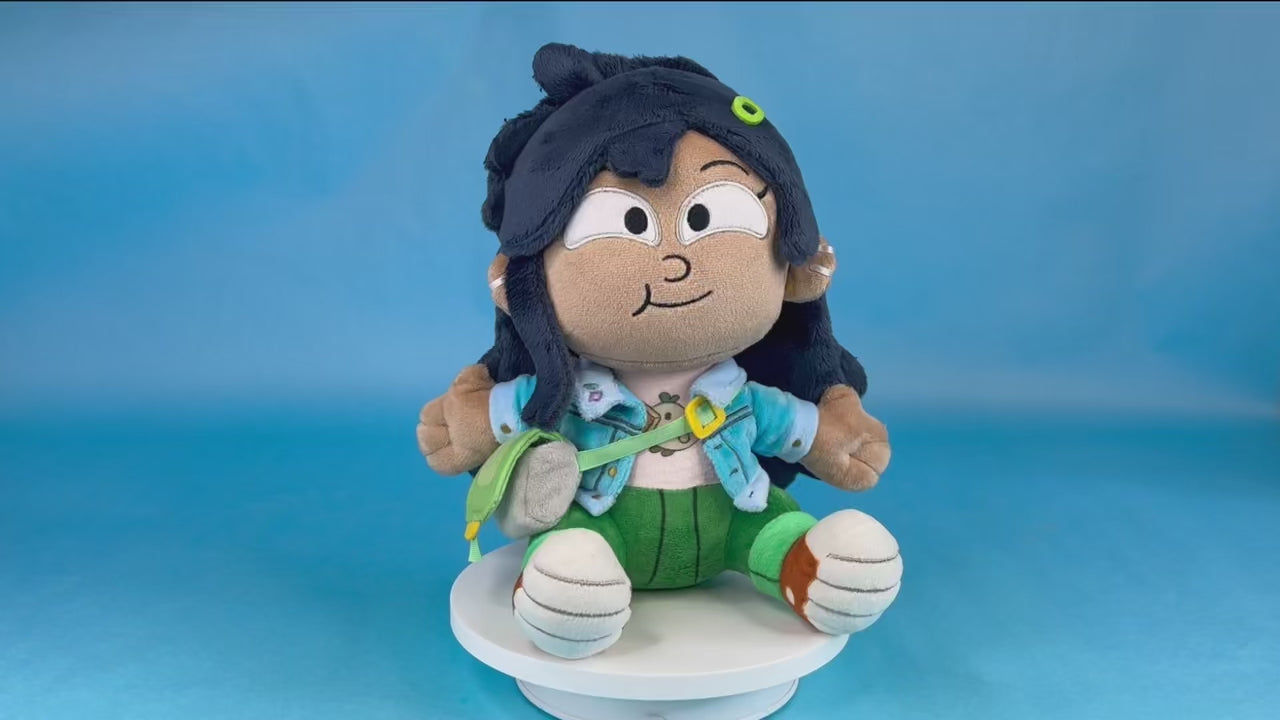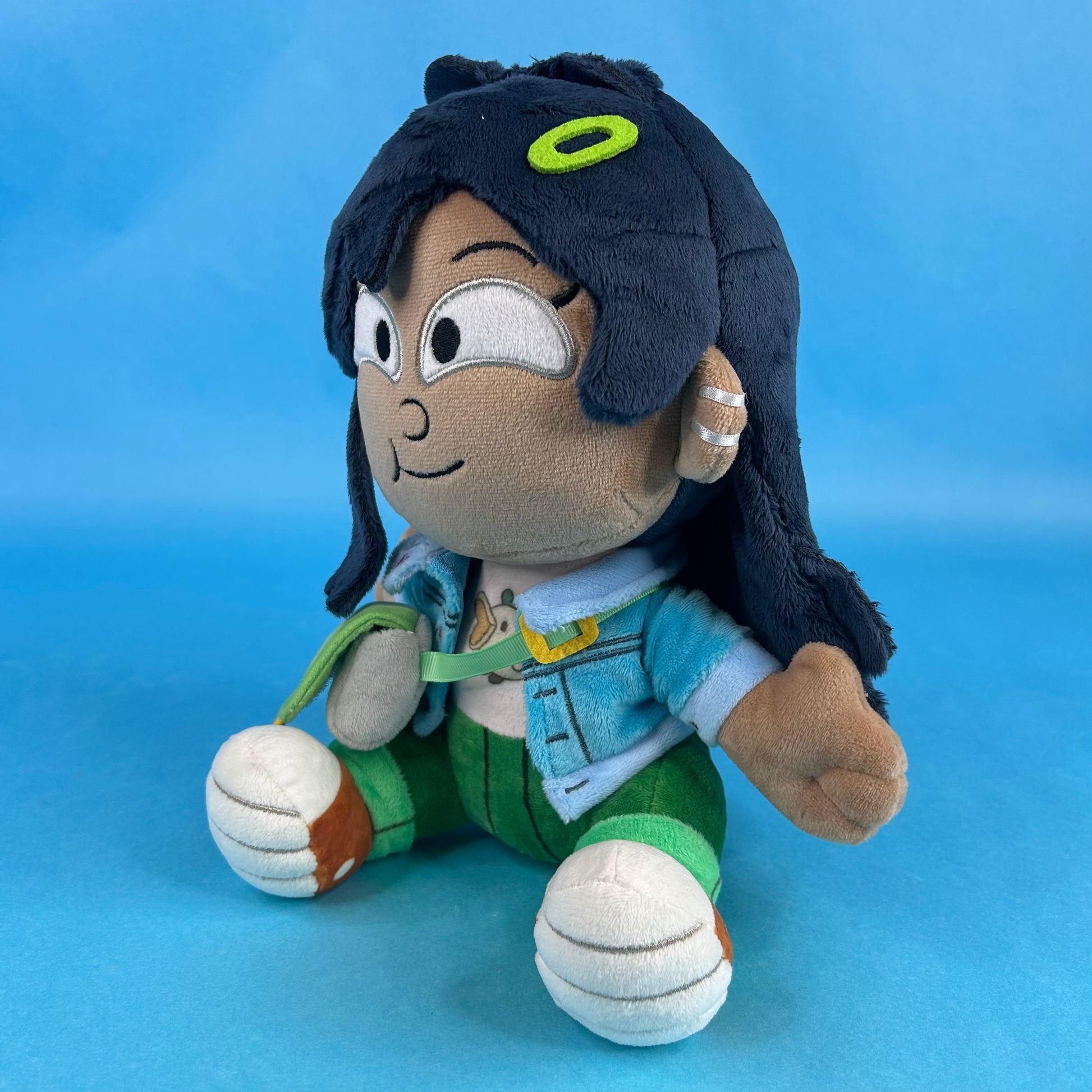 Marcy’s at her arrival gate waiting to be picked up! This plush is 26 cm tall (10.2 inches), made of soft minky fabric. She comes with her removable shoulder bag that opens with Velcro. (Bundle contains 3-inch tall acrylic Marcy charm.)